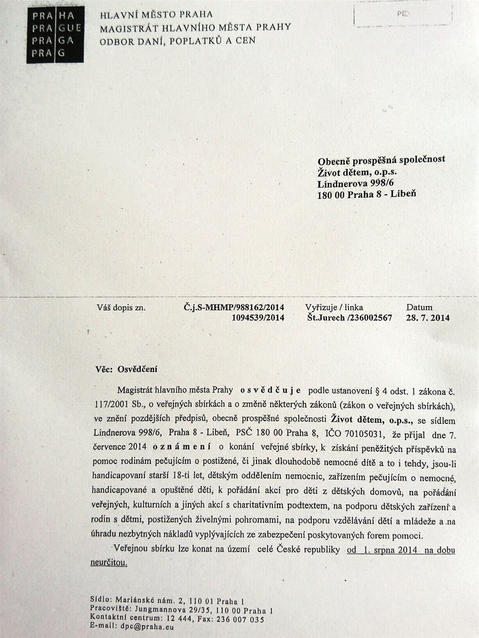 Finanční výtěžek je určen na pořízení nezbytných zdravotních pomůcek, na rehabilitace a ozdravné pobyty vážně nemocných dětí. Příběh Matýska se závažným zdravotním problémem mluví za všechny děti, které naši pomoc potřebují.